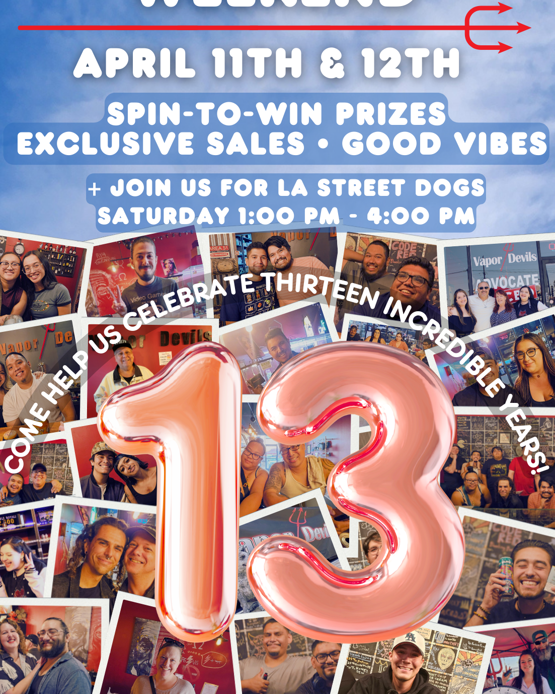 Join us April 11th & 12th in celebrating THIRTEEN incredible years at Vapor Devils!